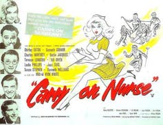 The earliest films: Carry on Sergeant (1958), Nurse (1959), Teacher (1959) and Constable (1960) are also noteworthy as commentaries on post-war British life as lived in relation to public service institutions: the army, the NHS, state schools and the police.